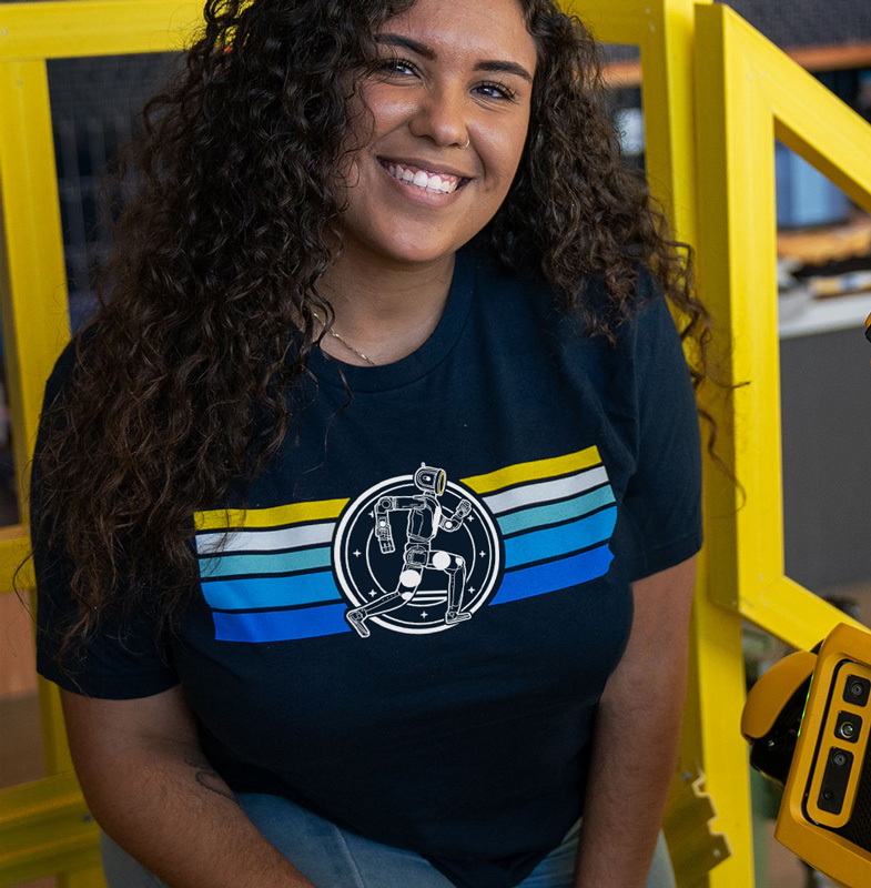 This eye-catching t-shirt features a sleek, horizontal stripedesign in a spectrum of bold and lively colors, creating abackdrop that's both modern and playful. Printed full front with the Boston Dynamics wordmark on the upper back, this tee is made with premium 100% combed ringspun cotton. The Next Level brand tee is soft and has a retail fit.